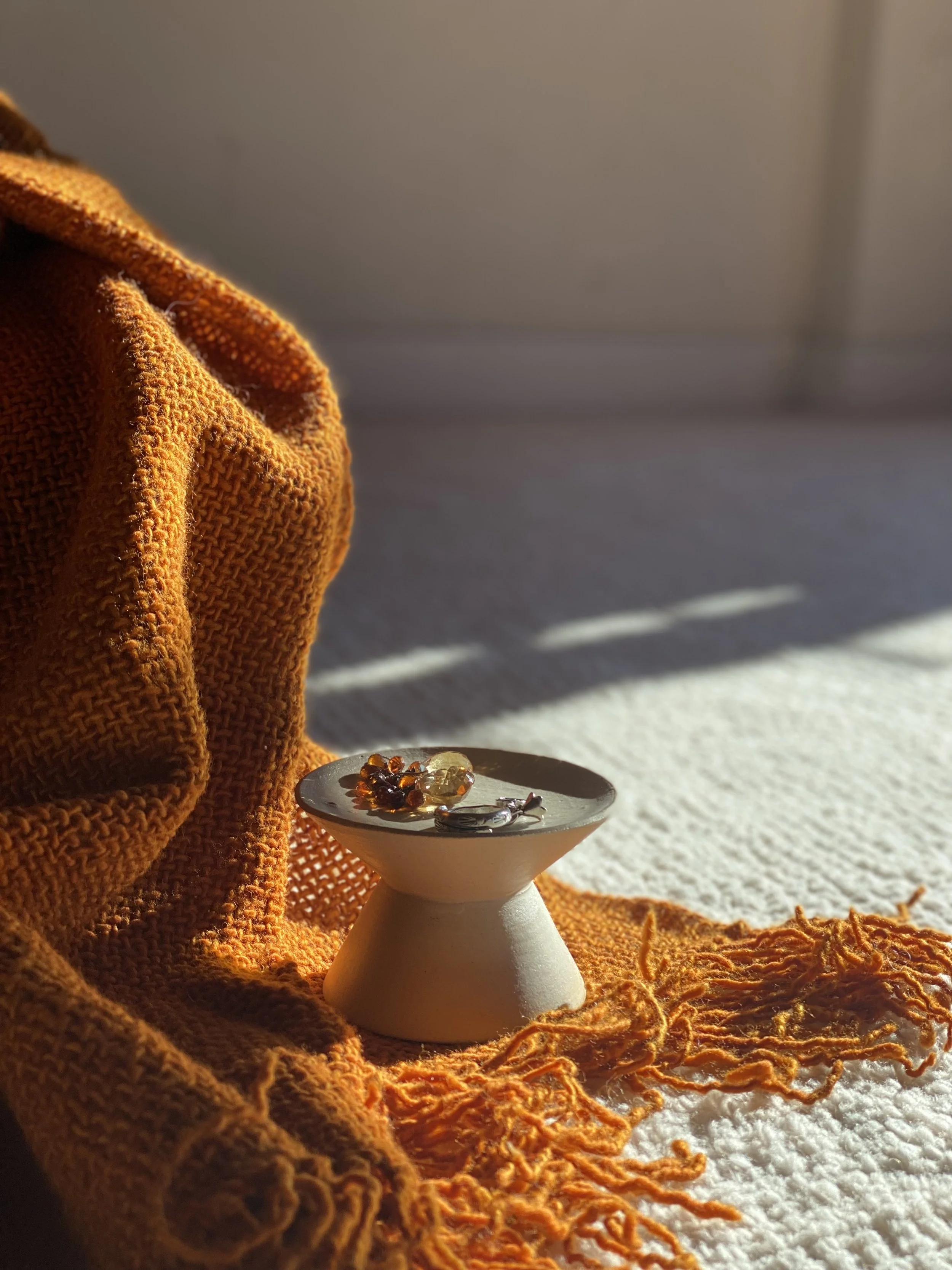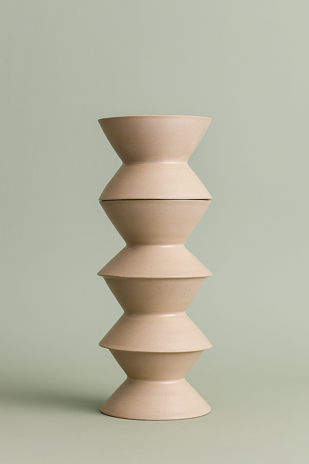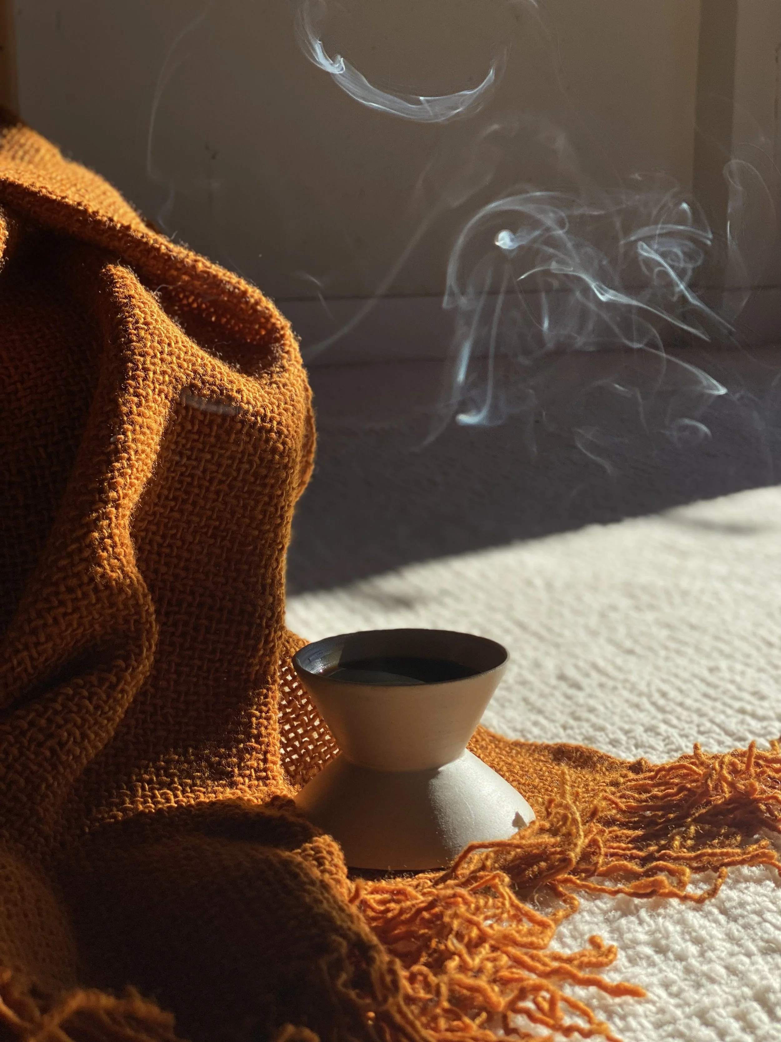 Questa filosofia viene rappresentata in un singolo oggetto dai molteplici usi: da un lato tazzina e porta gioie; dall’altro porta incenso e porta candela,.